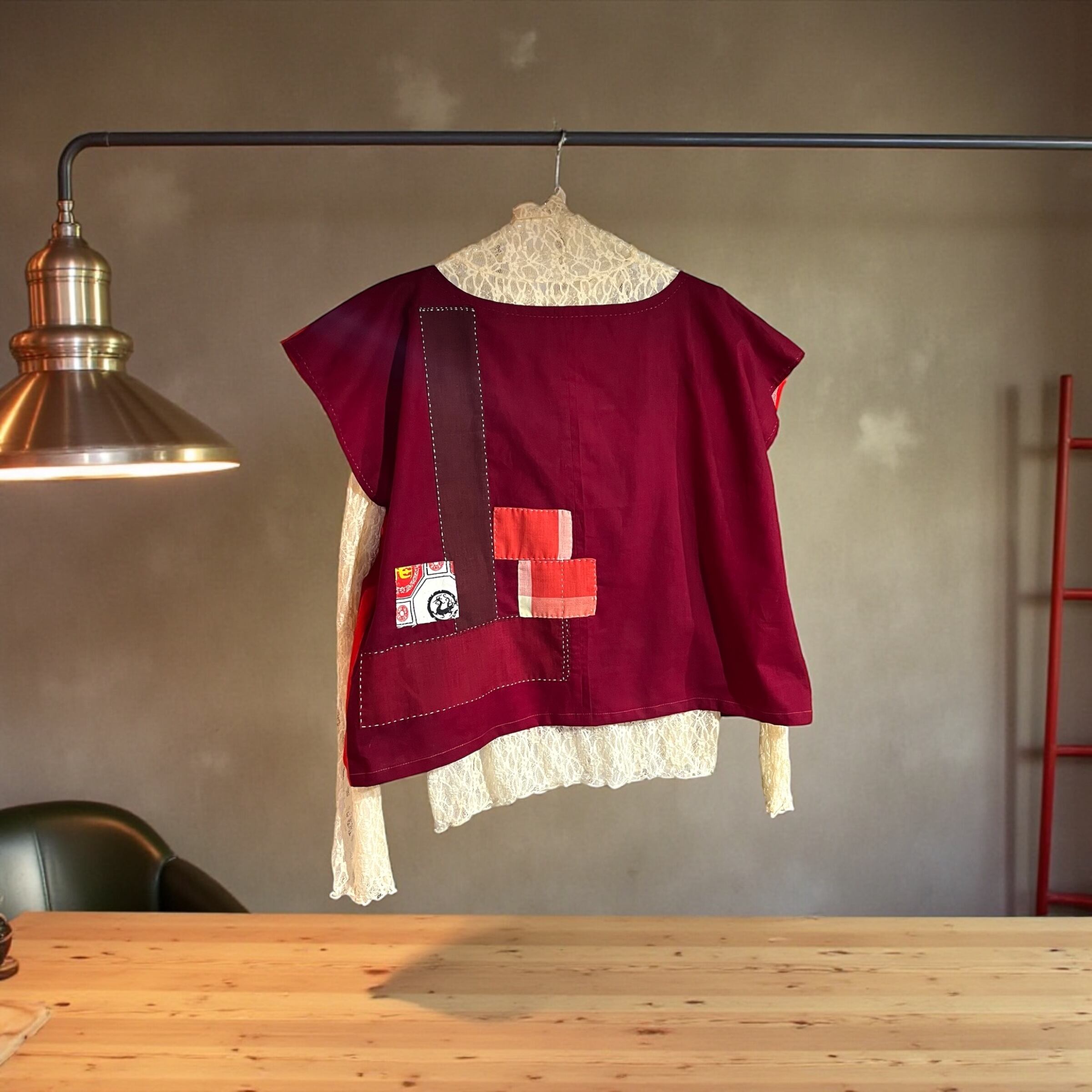 古布の赤のブラウス