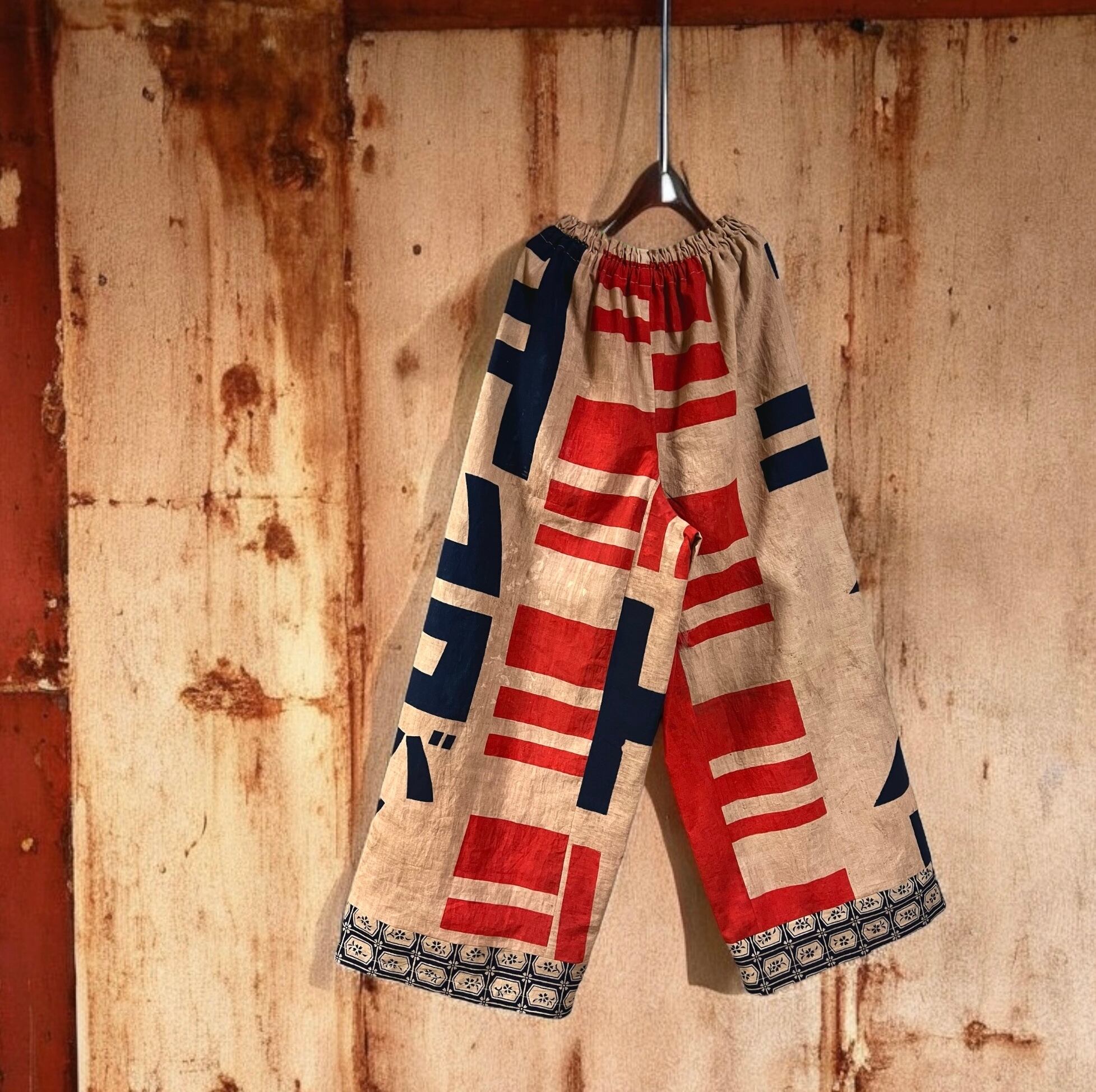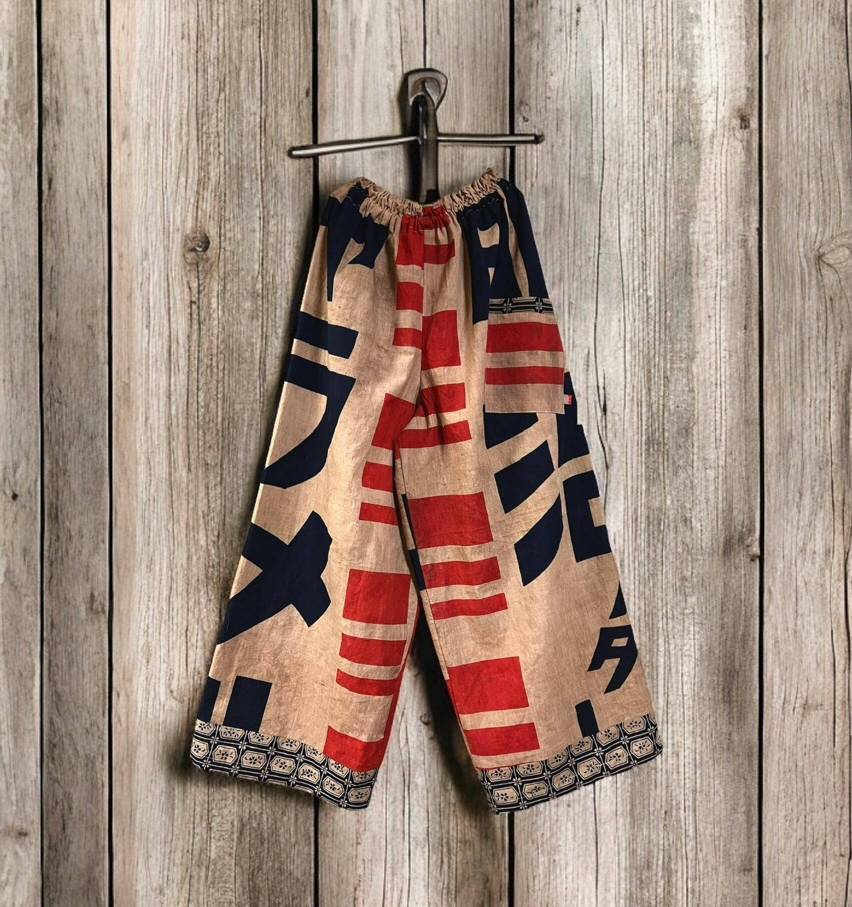 Created a Pants from a Showa-era(1926-1989) retro Butter Caramel Flag which the store used to advertise. Dyed with Persimmon tannin.